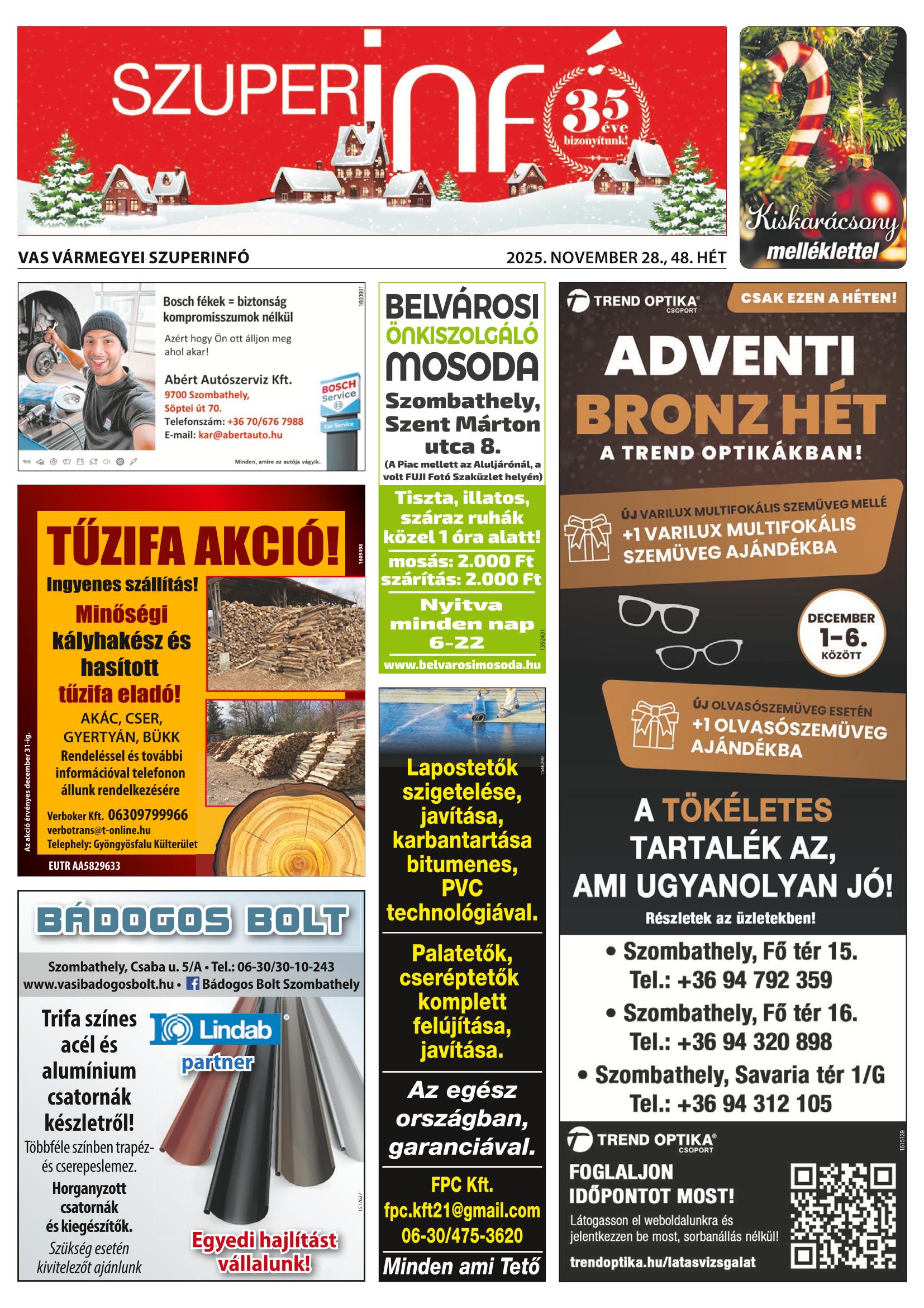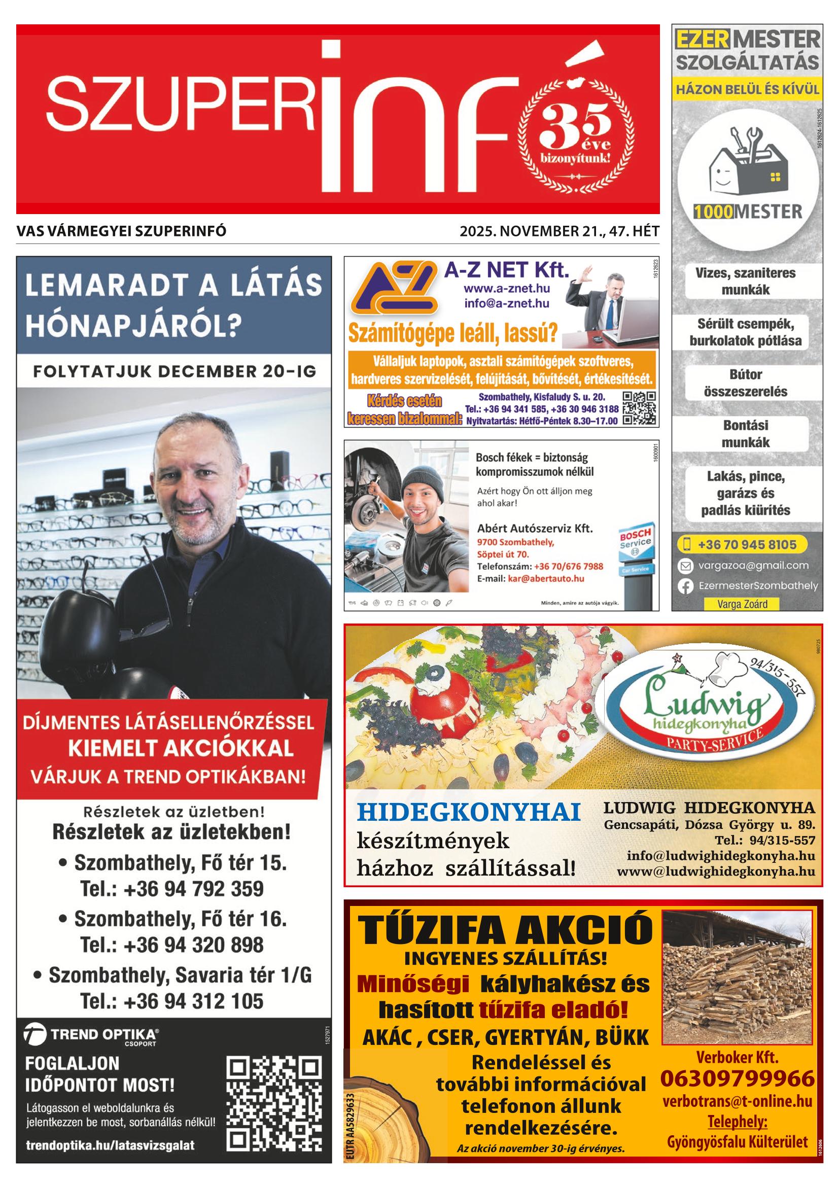 Iratkozzon fel, és megküldjük Önnek a FRISS SZUPERINFÓ újságot!