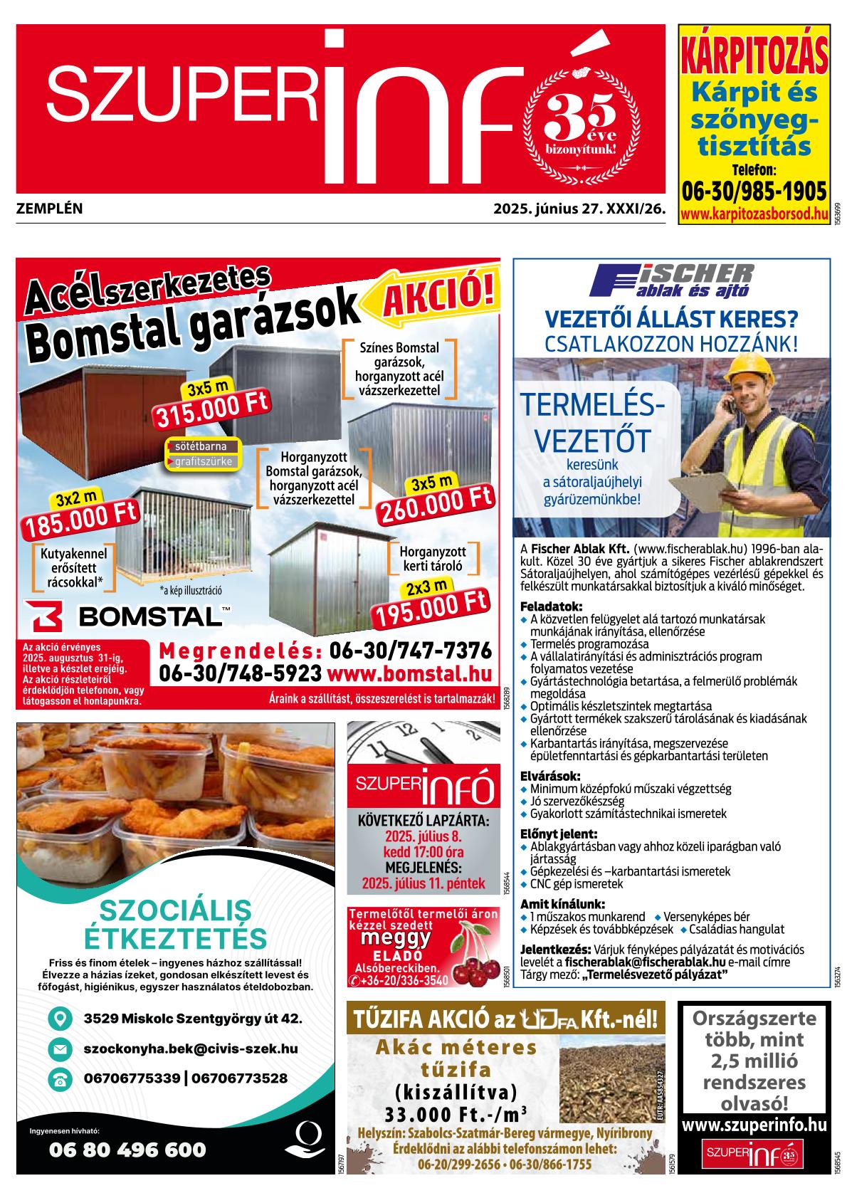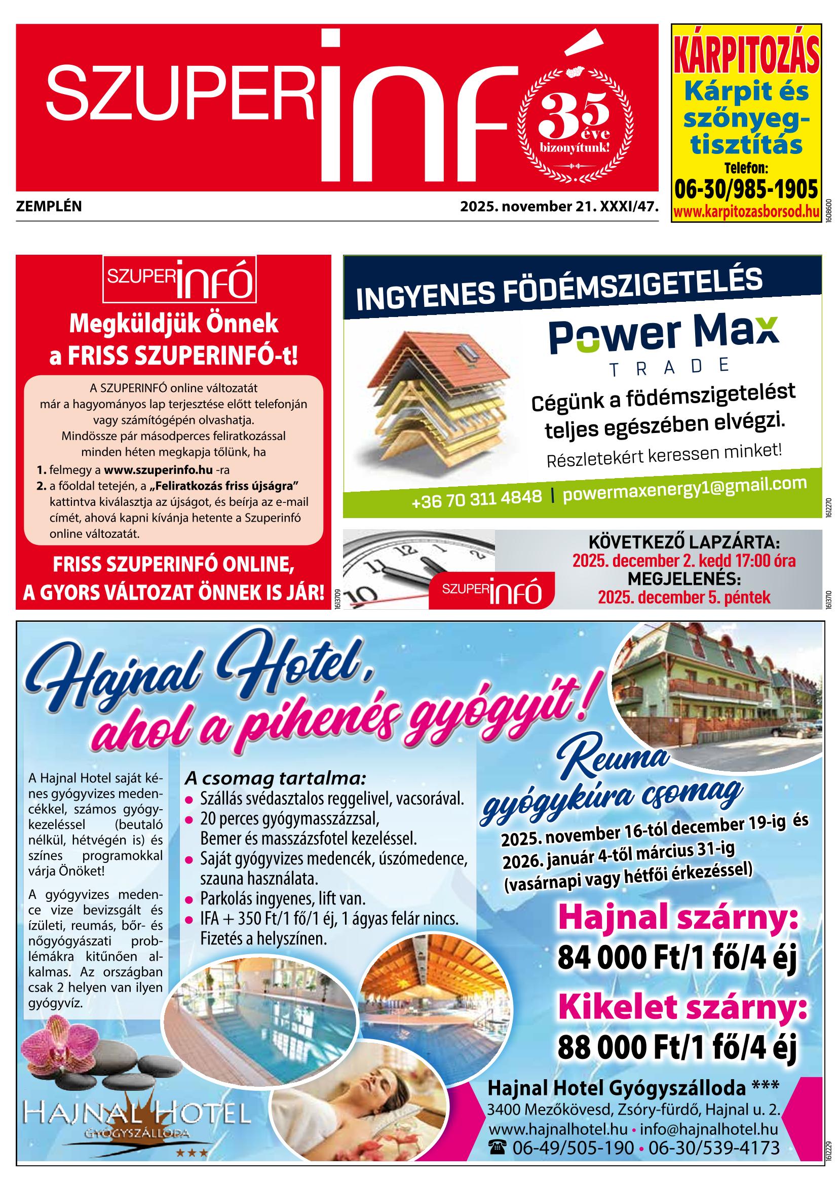 Iratkozzon fel, és megküldjük Önnek a FRISS SZUPERINFÓ újságot!