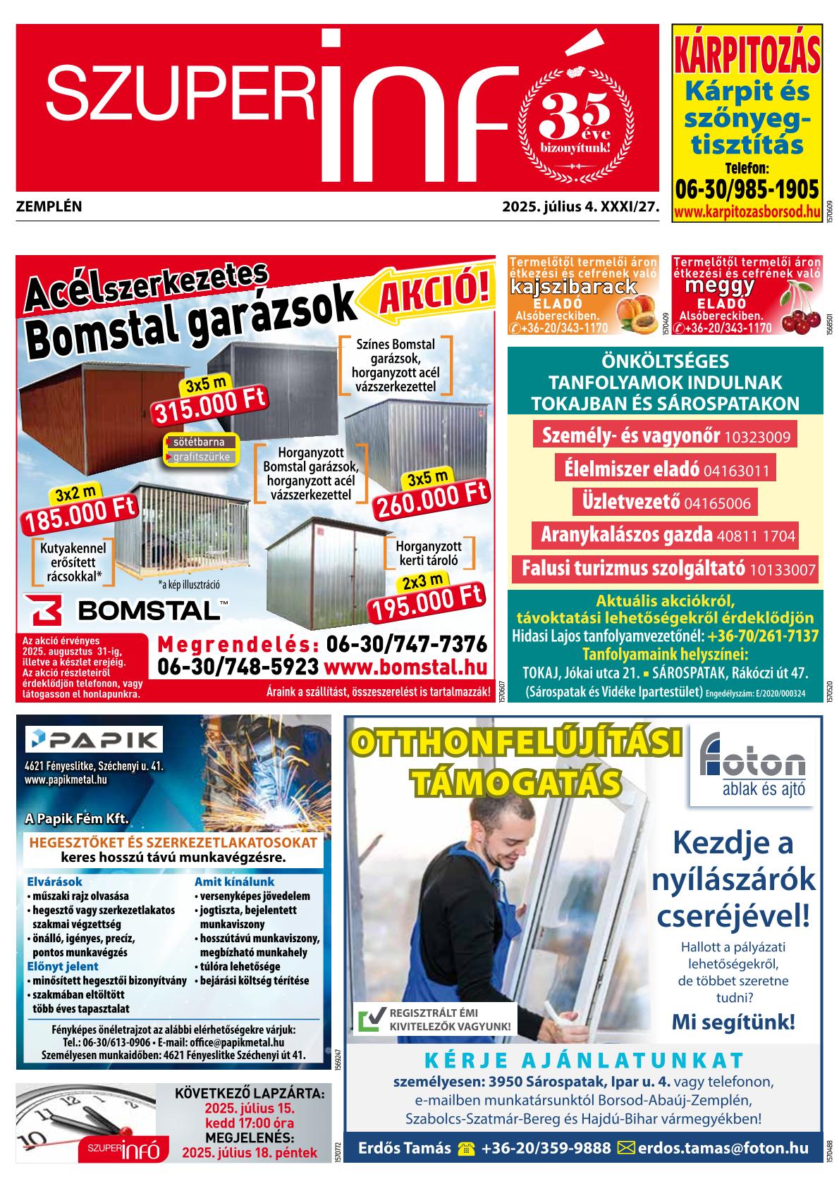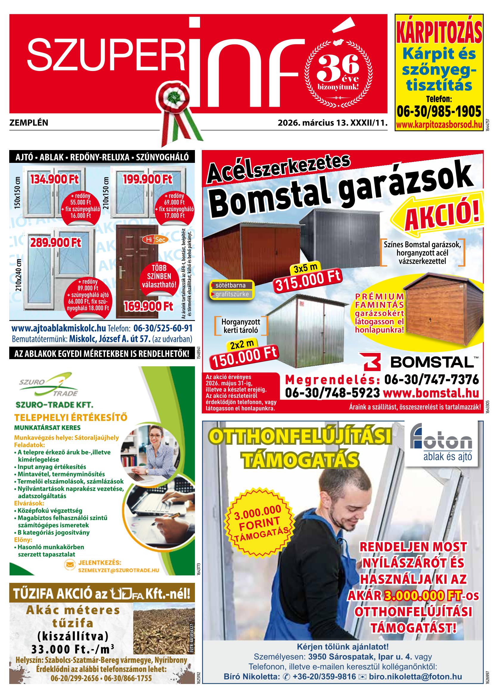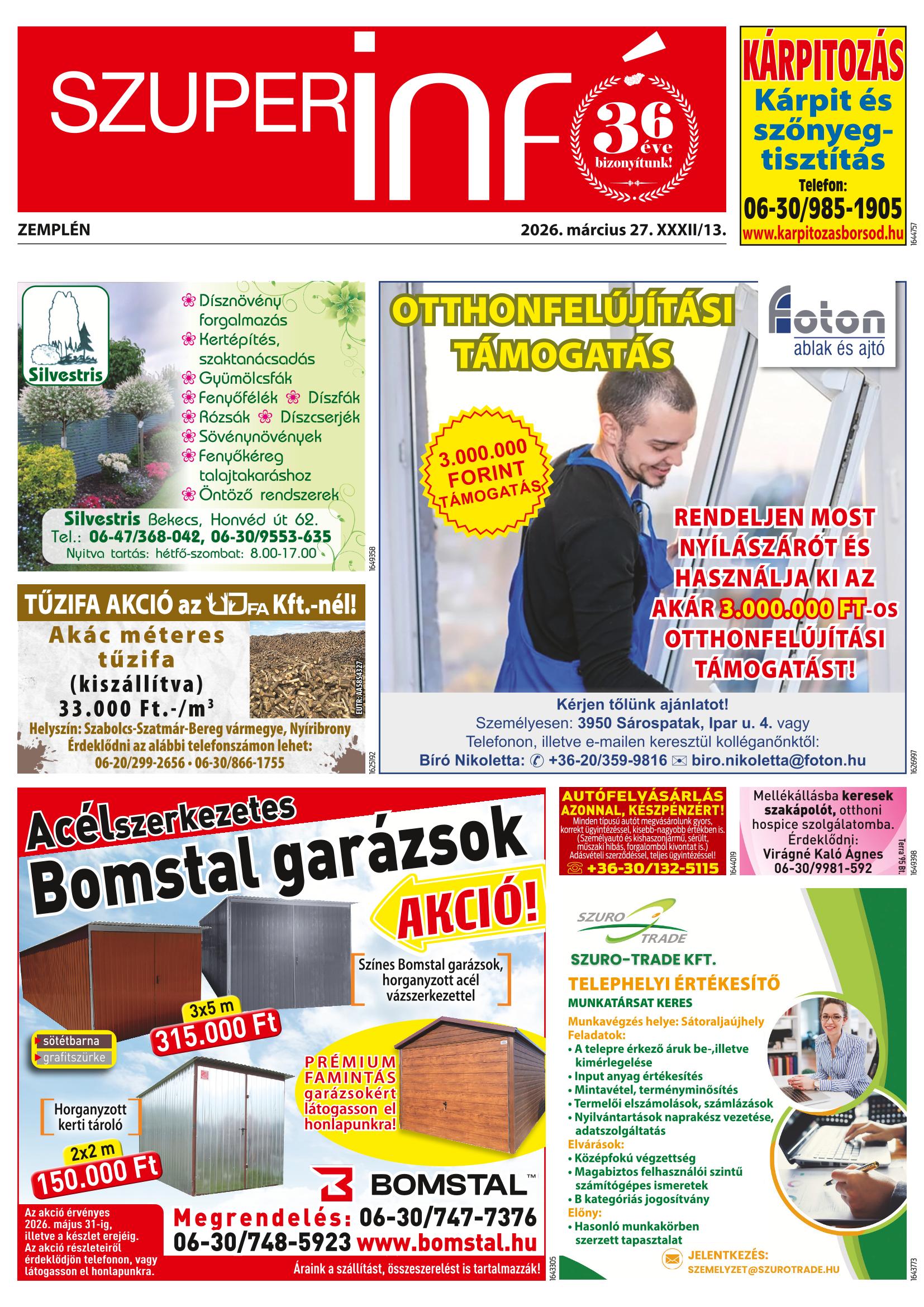 A SZUPERINFÓ online változatát már a hagyományos lap terjesztése előtt olvashatja telefonján vagy számítógépén!